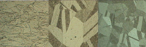 - فاز آستنيت: عمدتاً به صورت روشن با مرز دانههاي مشخص و همراه با دوقلويي بوده و عمدتاً در فولادهاي زنگ نزن آستنيتي رويت مي شود.
